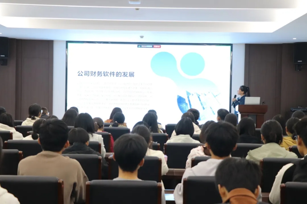最后,师生们落座培训室,公司财务部经理孙立丹从财务软件开展、职业规划等角度,为学生们进行全面、系统的讲解,内容既涵盖理论知识,又注重经验传授,加深了学生们对就业方向的理解和认识。